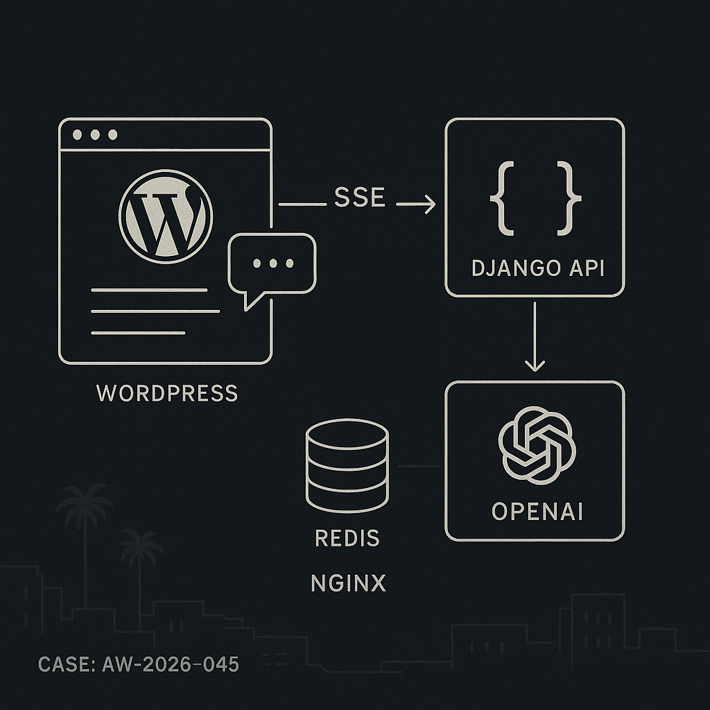 This pattern keeps WordPress simple and secure, offloads AI to a hardened backend, and delivers fast, streaming responses with production safeguards.