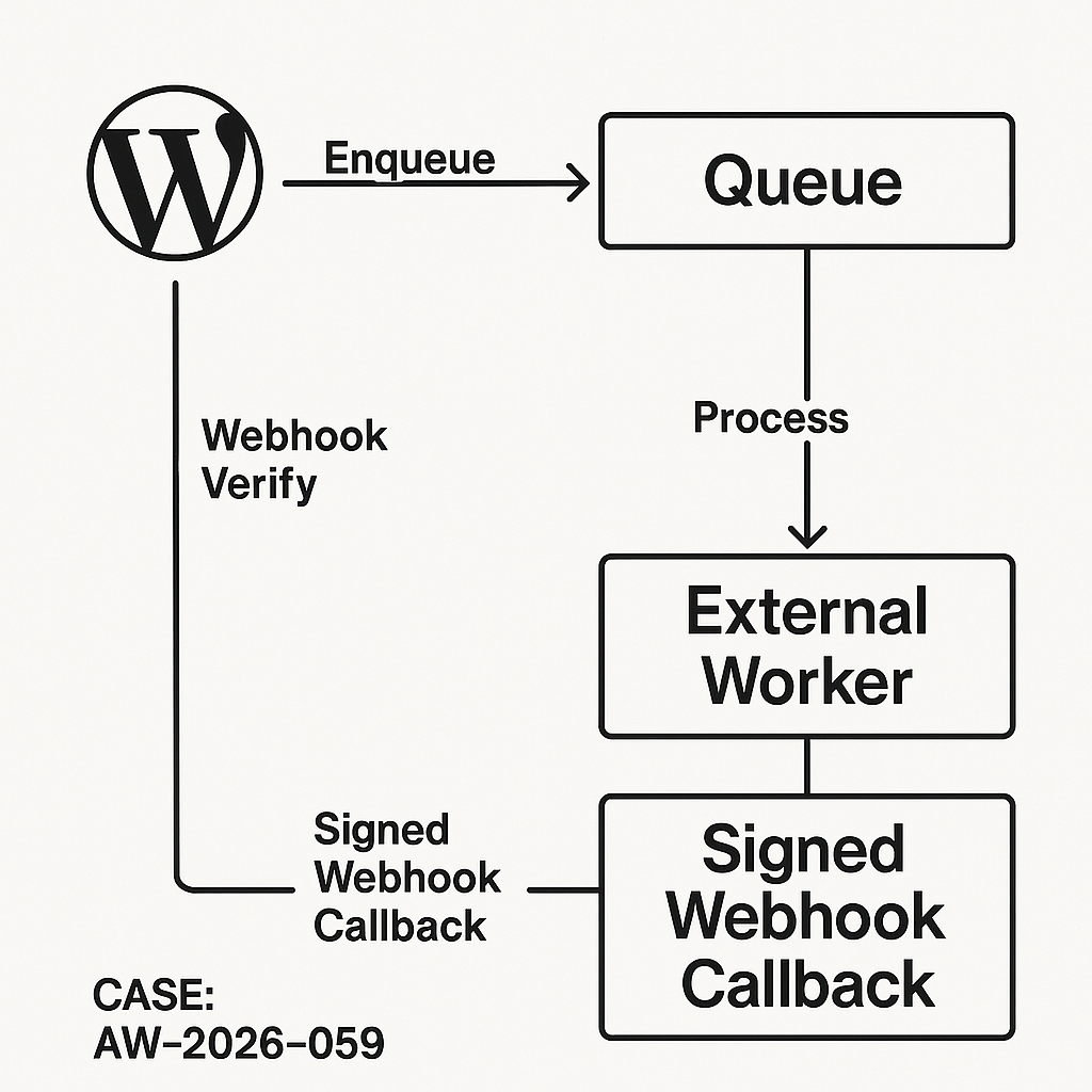 A production-ready pattern for AI in WordPress: async jobs, signed webhooks, and external workers
